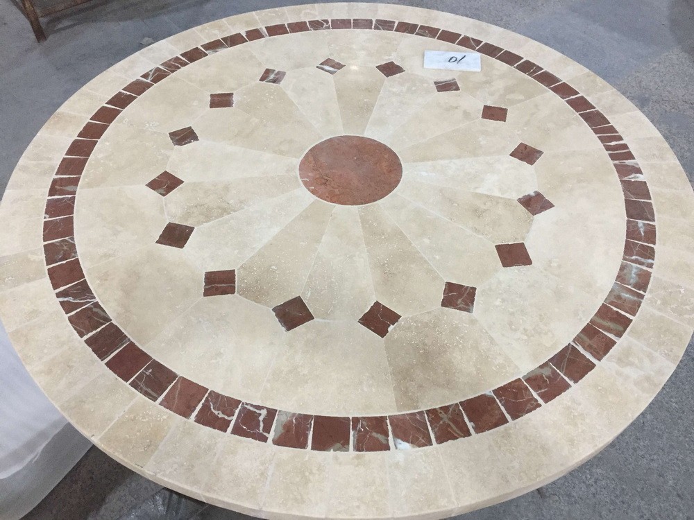 A noter que chaque pièce est unique et que les mosaiques de pierre naturelle utilisées et leurs finitions impliquent des variations plus ou moins importantes: de couleurs +ou- 30%, de veinage, de texture (coquilles, nœuds, aspérités, cristaux...) , qui fluctuent d’un plateau à l’autre pouvant jouer un peu sur le rendu du dessin en lui même ( au besoin nous contacter svp pour plus de précision sur notre process) - ( photos non contractuelles et à titre indicatif).
