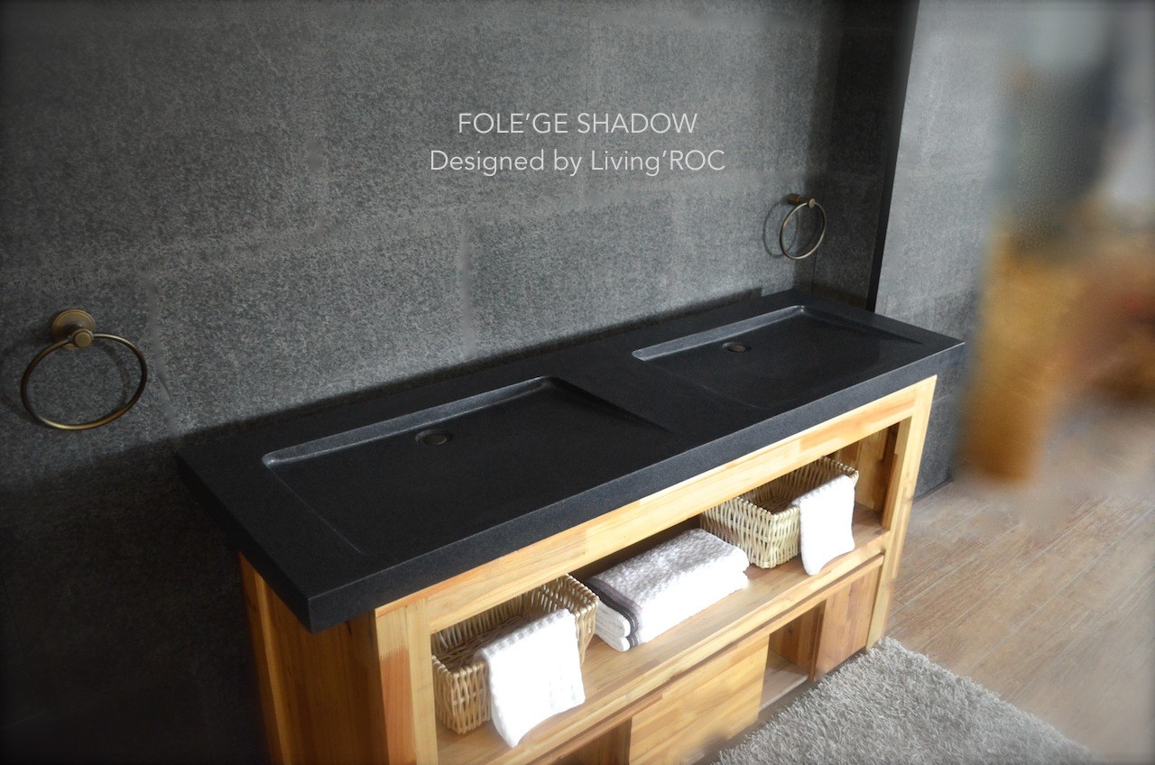 La Fole'ge Shadow se décline dans un style zen et épuré pour donner une ligne simple et chic à votre salle de bain. Taillée dans la masse à même un bloc de Granit rare et précieux, elle saura vous convaincre avec ses formes généreuses de 160 cm qui fait d'elle un produit unique en France et en Europe. Cette double vasque est issue de la gamme Aquados réalisée uniquement en pierre naturelle.