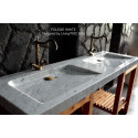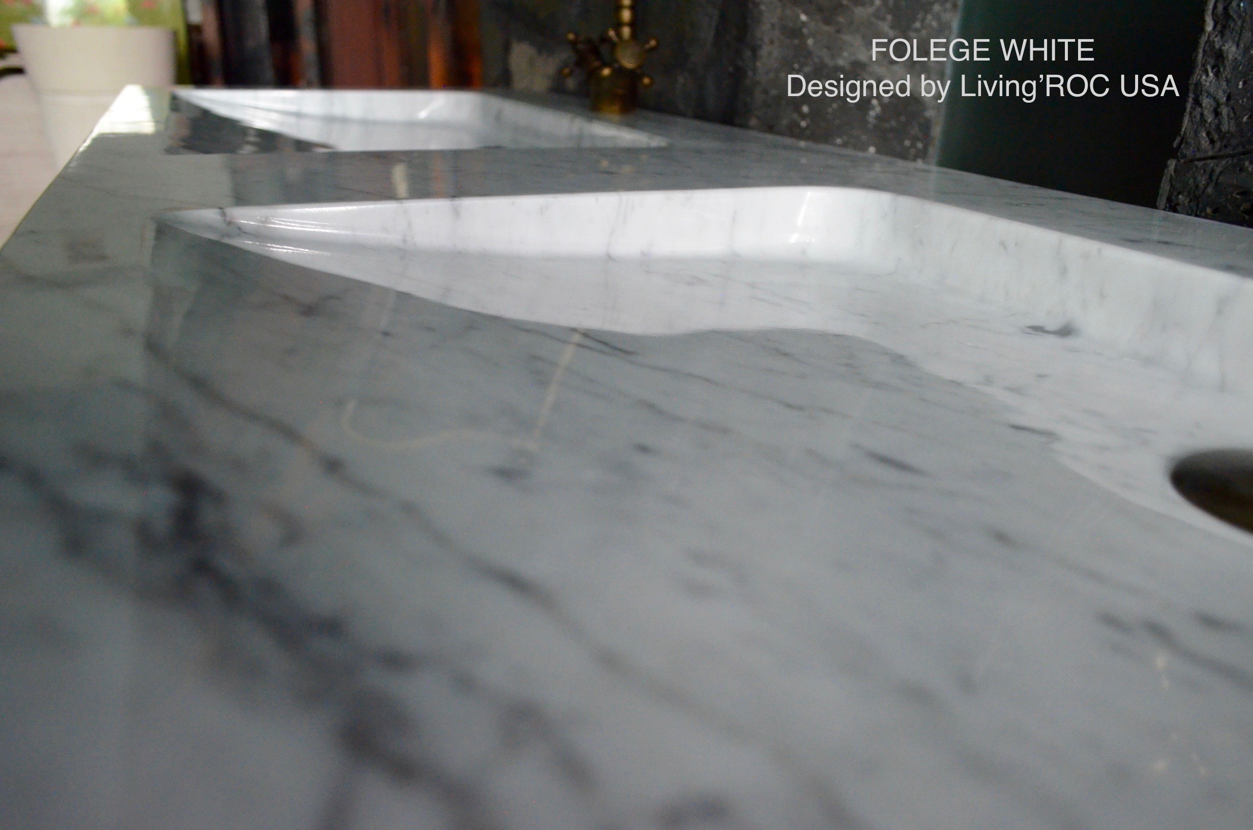 Folege White 160X50cm est un Plan Double vasques fabriqué en Marbre de Carrare (carrara white) taillé dans la masse d'un bloque de pierre naturelle avec ou sans trous. Très populaire sur le marché US-Canadien et UK cette double vasque vous apportera la garantie de rendre votre salle de bain unique. Création exclusif en Europe - Valorisez votre habitation en installant cette création Living'Roc qui se décline dans un style zen et épuré pour donner une ligne simple et chic au projet final de votre salle de bain.